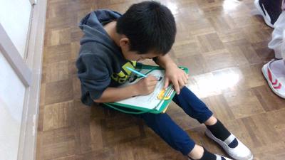途中で2年生が1年生を教える場面がありました。お兄さんお姉さんらしく、合わせる位置や手の動きなど細かいところまで教えていました。