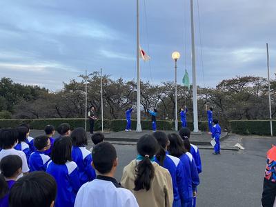 最初に国旗降納があり、児童代表のあいさつがありました。