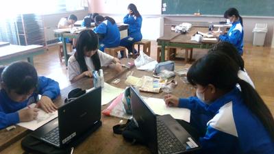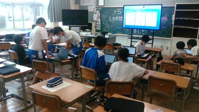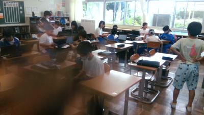 7月に3校の5年生がリモートで交流します。本校の5年生は総合で学習している高齢者福祉について紹介する予定です。今日はその準備をしていました。