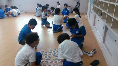 本校では、異学年交流として昼の活動で縦割り集会を行っています。今日は初めて顔を合わせる日でした。自己紹介や今後の活動を確認したあと、室内で交流活動を行いました。短い時間でしたが、リーダーの6年生が主体的に会を進め、楽しく活動していました。