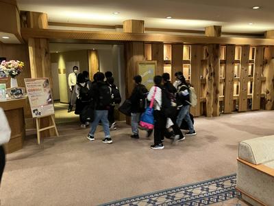1630 修学旅行1日目を無事に終えて、みんな元気に旅館に到着しました。