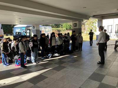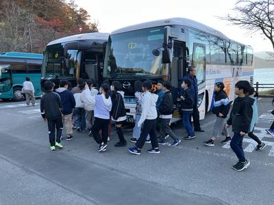 今日から2日間、6年生が日光方面に修学旅行に出かけます。今、子供たちの司会のもと、出発式を終えて、7:59分、バス2台で足利方面に予定通り出発しました。