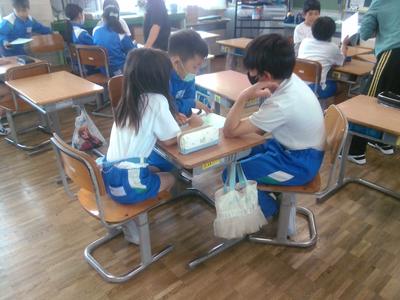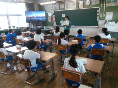 「みんなみんないきている」という教材を担任が読み聞かせをしながら、毎日の生活の中で、嬉しいことや悲しいことについて発表しました。「6年生が手伝ってくれて嬉しかった」「給食の時間は嬉しい」「友達と遊べないと悲しい」などたくさんの経験が発表されました。