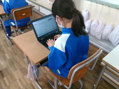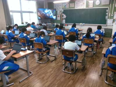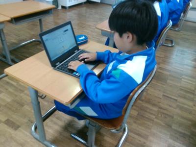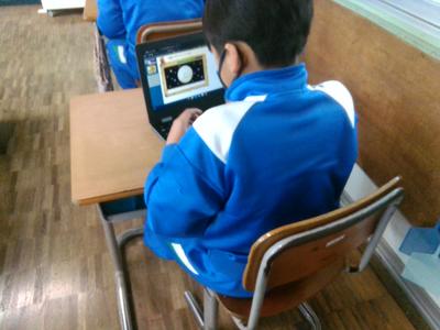 4年生の教室の前を通ると、どちらのクラスもこどもも黙々とタブレットに向かっていました。中に入ってみると、「うーん難しい!」などの声が聞こえました。授業で本格的にタブレットを使い初めて2年が過ぎますが、自分の考えを表現するときに、写真に撮ったり、手書き文字で書き込んだり、直接タイピングで文字を打ったり発達段階によって様々です。4年生ではタブレットのソフトを活用して一生懸命練習していました。