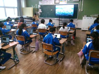 今日のめあては、「富岡製糸場ができたことにより、どんな良いことがおこったか」でした。絹産業遺産群の歴史的な価値や実際の行われた内容について、子供たちはタブレット使って調べ、字調べたことをタブレット上に表現していました。