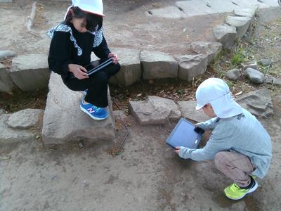 今日は校庭の生き物を探しに行きます。見つけたらタブレットに記録します。担任から、色や形、大きさがわかるように、という確認がありました。