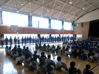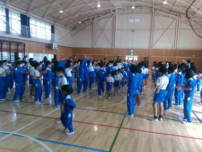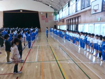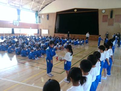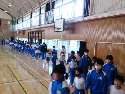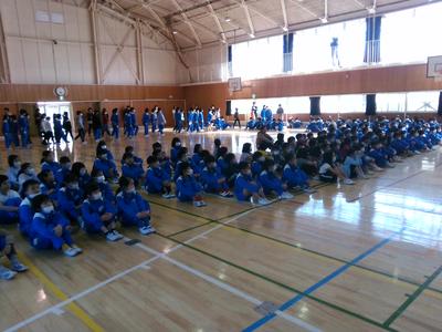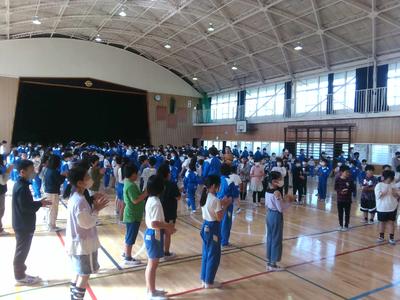 体育館で行う迎える会は3年ぶりですが、6年生が上手にリードして、心暖まる会となりました。