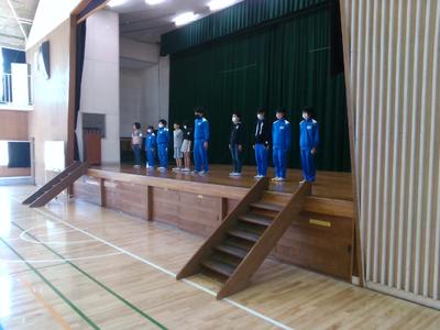 それぞれの代表が聞く側に目と体を向けながら、語りかけるように表現していました。聞いている子どもたちも声を出したり、うなずきながら静かに聞いたりしている様子は立派でした。学校やクラス、友達のためにできることを進んで行う、ということは本校の学校目標の一つです。下級生はそのことに感謝の気持を持って生活できると良いと思います。最後に、司会担当から校長の話の感想をその場で考え、述べる場面があって感心しました。
