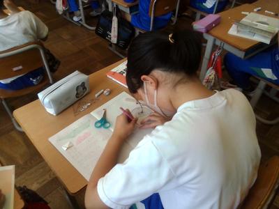 3年生の図工は「くるくるランド」という題材で学習が始まりました。色画用紙や工作用紙などを使って、割りピンで上を回す仕組みを利用し、自分の表したいものを作ります。