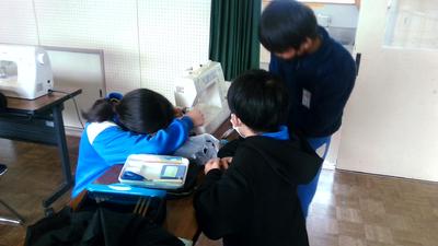 「ミシンにトライ!」という題材で、今日はチームに分かれて協力しながらミシンを使ってエプロン作りにチャレンジしていました。