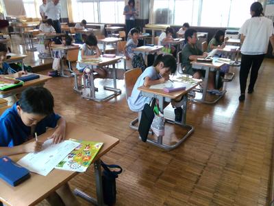 2学期が始まって二日目ですが、教科担任制の関係から学級の組織作りと並行して各教科の授業が始まりました。5年生の午前中の授業の様子を覗いてみました。