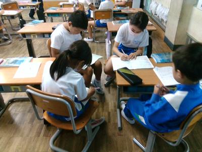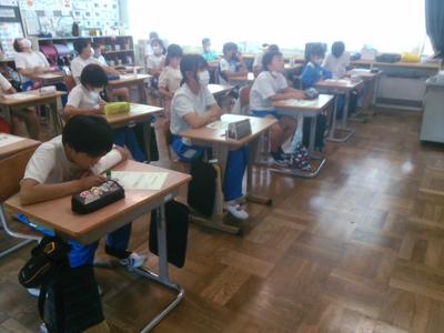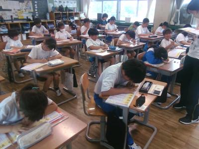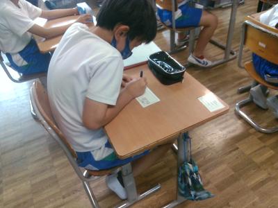 漢字学習の後に、いじめ0宣言を各自考えました。クラスの中でいじめを無くすにはどうすればよいか意見交換した後、一人ひとりが考え、用紙に宣言を書きました。