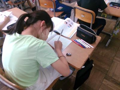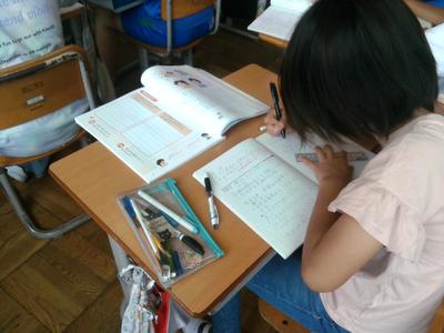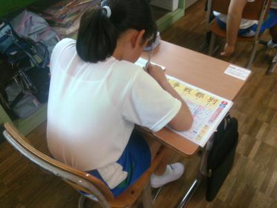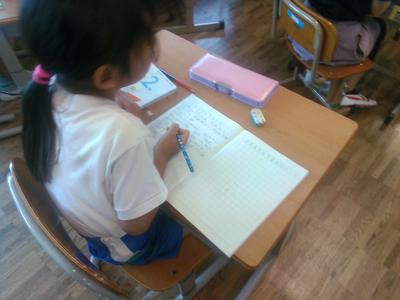 偏やつくり、書き順など今まで習った漢字と比較しながら確認していました。書く練習の時には、シンと静かに集中していました。