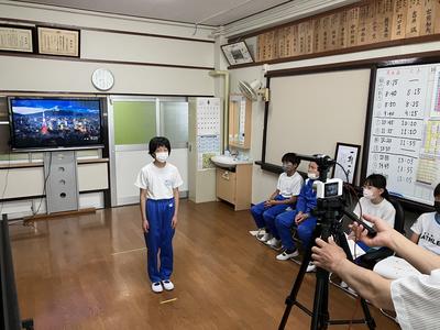 今日の朝行事に音楽集会を行いました。ボランティア委員が司会進行し、今回は音楽室からのリモート形式で行いました。