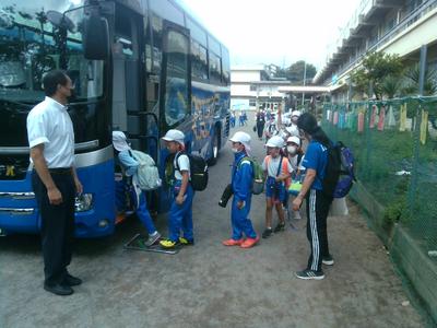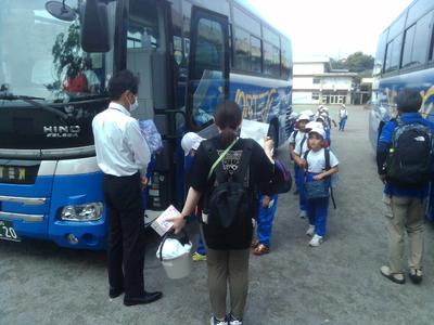 先程出発式が終わり、バス2台で出かけました。バスに乗るときには、お願いします、と元気よく挨拶していました。天気も雨の心配はなさそうなので、安全に楽しく学習してきます。