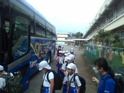 バス 清掃センター見学4年生①1組出発