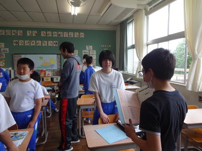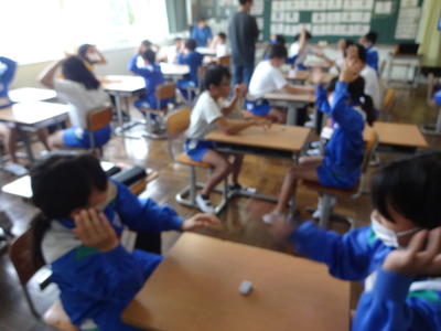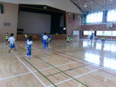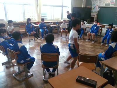 雨模様のため、朝行事の縦割り集会は室内ヴァージョンで行いました。高学年が中心となって遊びを進め、短い時間でしたが異学年で楽しく交流しました。