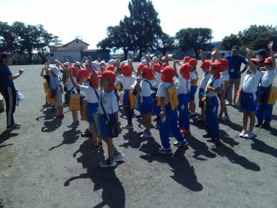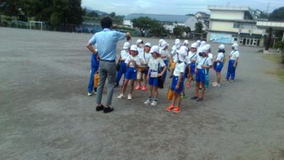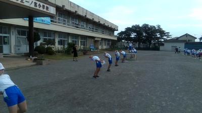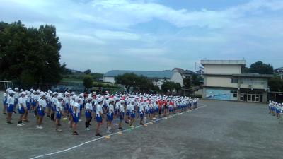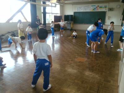 途中で雨がぱらついてきましたが、子供たちは体育委員の模範を見ながら上手にできていました。