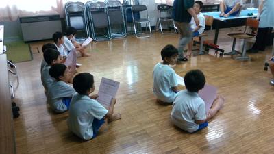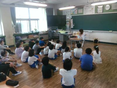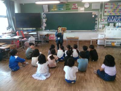 子供たちは集中してお話に聞き入っていました。お忙しい中、子供たちのために工夫した読み聞かせをしていただきましてありがとうございました。