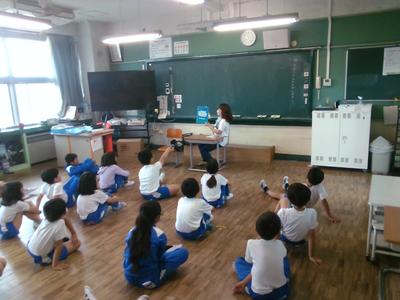 子供たちは講師の先生とやり取りしながら興味をもって参加していました。