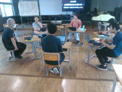 最後に授業作りについて校内研修のテーマに沿って話し合いました。先生方も子供たちに負けないように、タブレットを使いながら協働学習をしていました。