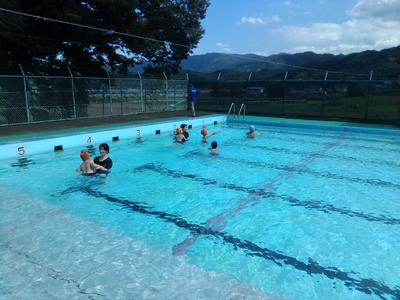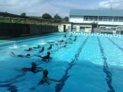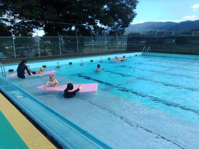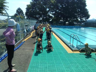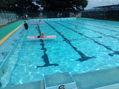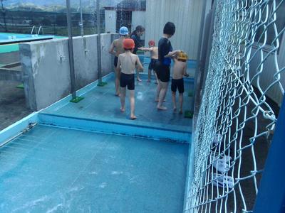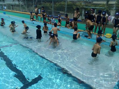シャワーの水の冷たさに歓声が上がりました。水慣れをした後、歩いたりフロートで泳いだり楽しい時間を過ごしました。