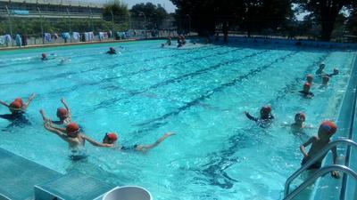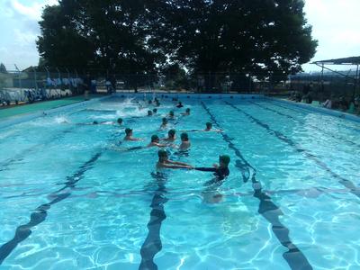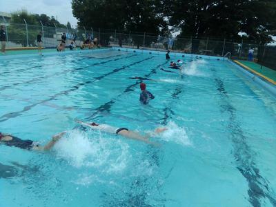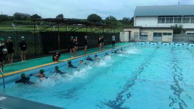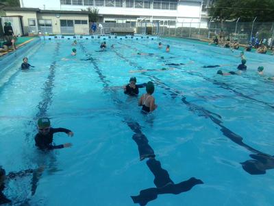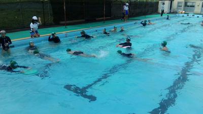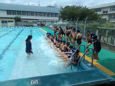 午前中に6年生が今シーズン初めてプールに入りました。