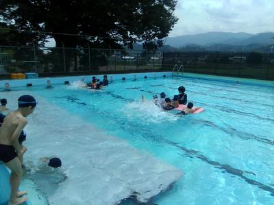 水慣れをした後、伏し浮きや水中散歩、実際に泳ぐ体験をしました。後半天気が崩れてきましたが、久しぶりに水泳学習を行い子供たちは満足そうでした。