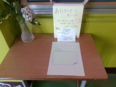 職員室前の廊下に小さな箱が置かれました。タイトルは「ありがとうカード」。放送委員会の企画で、毎日の生活の中でありがとうを伝えたい人にメッセージを書き込み投稿すると、その内容をお昼の放送で紹介するというものです。