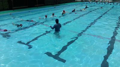 今日は10時間予定(全5回)の5回目で、予定では最後のプールとなります。検定に向けて、蹴伸びやバタ足などの基本的な動きを確認しました。