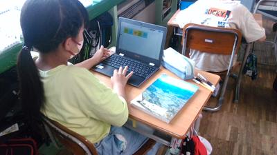 自分たちの撮影した映像を共有しているところでした。今までは、年間を通して変化の様子をワークシートに絵を描いて記録してきましたが、タブレットを活用することで、画像を見ながら変化の様子について考えることが容易になりました。タブレットを上手に扱う4年生の様子に驚きました。