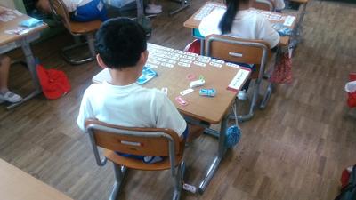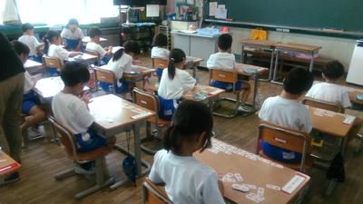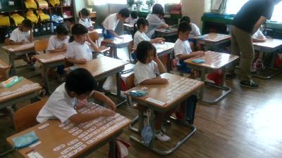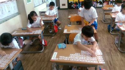 4の2の教室から活発な声が聞こえてきました。覗いてみると漢字の学習をしていました。