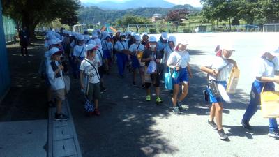 今日の2,3校時に5年生が総合的な学習で「一ノ宮ハッピーセンター縁」に校外学習にでかけます。暑い中ですが、熱中症に気をつけて行ってきます。いま、縁に向かって出発しました。