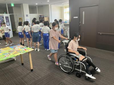 次に実際に車椅子に乗ったり押したりする体験をしました。小さな振動を感じたり、押す力が必要だったり、いろいろ気づいていました。