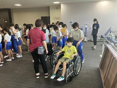 次に車椅子体験をしました。車椅子を押す時の注意や段差がある時の介助の仕方を教えていただきました。