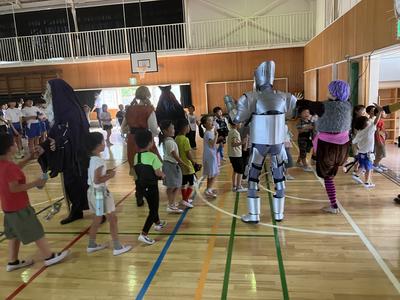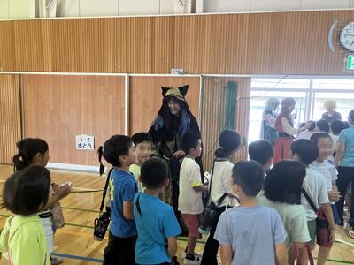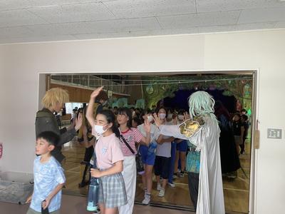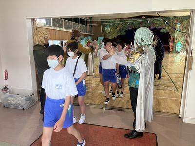 子供たちが体育館を退場するときには、役者さんが出口に並び見送ってくれました。子供たちは大喜びで、名残惜しそうに体育館を後にしました。