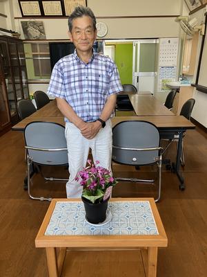 本日区長会長の小林清孝様より花を飾る台を寄付していただきました。小林区長さんは元々大工をやられていた方なので、とても立派な花台です。校長室に置かせていただきたいと思います。ありがとうございました。