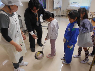 最後に、さっき作っていた給食を、その場でいただきました。温かくてとても美味しかったです。