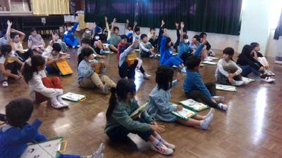 子供たちは問いかけに反応しながら、静かに栄養士さんの話を聞いていました。