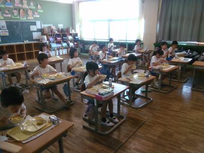 食べる姿勢や食器の持ち方、口を閉じてかむこと、三角食べなど、イラストを交えながらわかりやすく説明していただきました。子供たちは自分の食べ方と比べながら、静かに聞いていました。