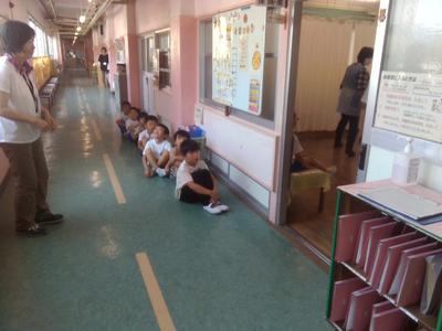 最初に歩き方についての注意することを確認した後、実際に学校の周りをグループごとに歩いてみました。