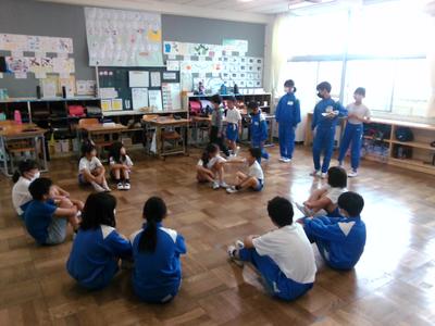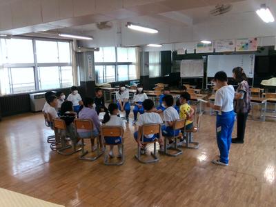 今日の朝行事に縦割り集会がありました。一つの班に1年生から6年生までが所属し、遊びを考えて異学年が交流する活動です。今日は雨が予想されましたので、室内での遊びでしたが、高学年を中心に企画、運営し楽しく活動していました。