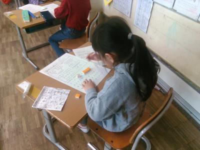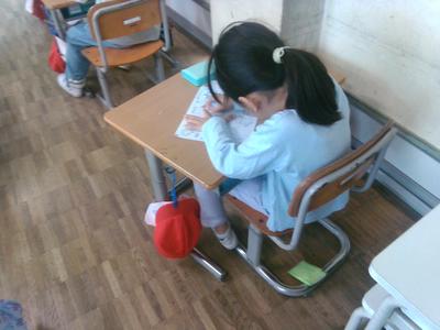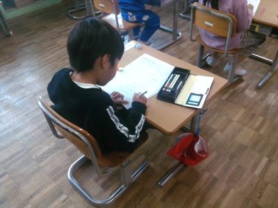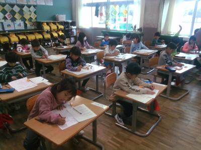ひらがなの学習が進んできました。今日は「ぬ」を学習していました。「ぬ」を使う言葉を考えた後、形に気をつけながら丁寧に書いていました。