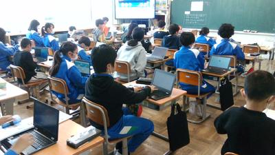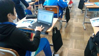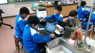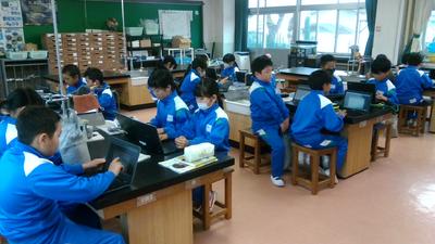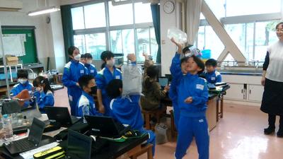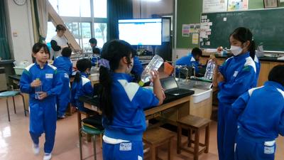 実験結果は、タグレット上に書き込み提出します。6年生はまとめの方法に慣れていて、表にまとめたり、途中で撮影した映像を挿入したり工夫している児童がたくさんいました。次の時間に結果を共有して考察します。