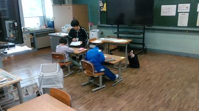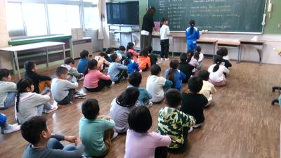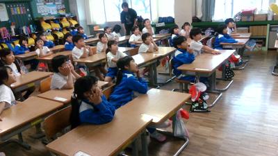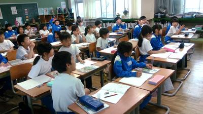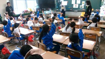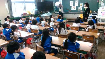 1年生の教室で、言語指導の担当が、ことばの教室のことや、実際に言葉について考える指導を行いました。