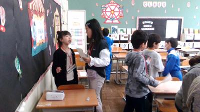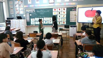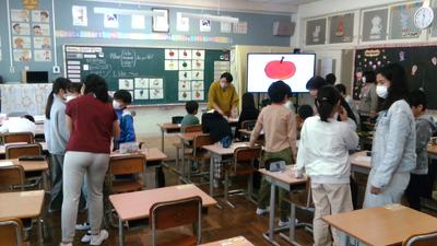 自分の好きな教科や動物などを決めて、言い方を確認しました。最初にデモンストレーションがあり、その後自由に言い合いました。自分から進んで紹介する様子が見られました。