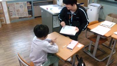 筆算の仕方は、今までも経験があり、けた数が多くなったり、整数が小数に変わったりしていきます。今日は今まで習ったことを思い出しながら、担任と子ども、あるいは子ども同士でどのようにしたらよいのか活発に話し合っていました。