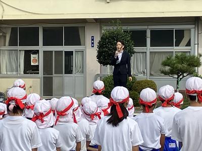 今日から、冨田なつみさんが教育実習生として本校に来ました。朝行事で紹介があり、主に5年1組でお世話になります。よろしくお願いします。
