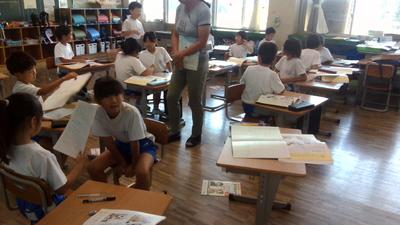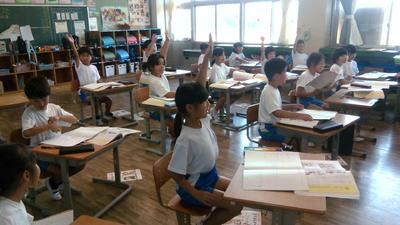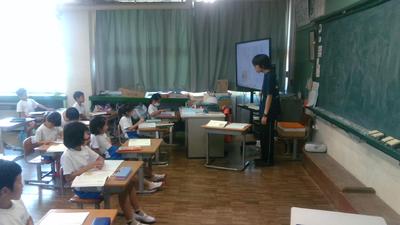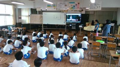 3年生は総合的な学習で「生き物の不思議を調べる」という学習を行っています。今日は4年生の講師によるカイコのお話を、隣の音楽室でリモートで聞きました。カイコの生長について「不思議なこと」を探しながら興味深く参加していました。