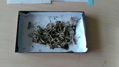 4年生の総合的な学習の一環として、まゆと生糸の触れ合い体験を行っています。先日カイコ100頭が夢人里の教室にやってきました。今日の2校時には、市より講師を招いてカイコの育て方を学習しました。